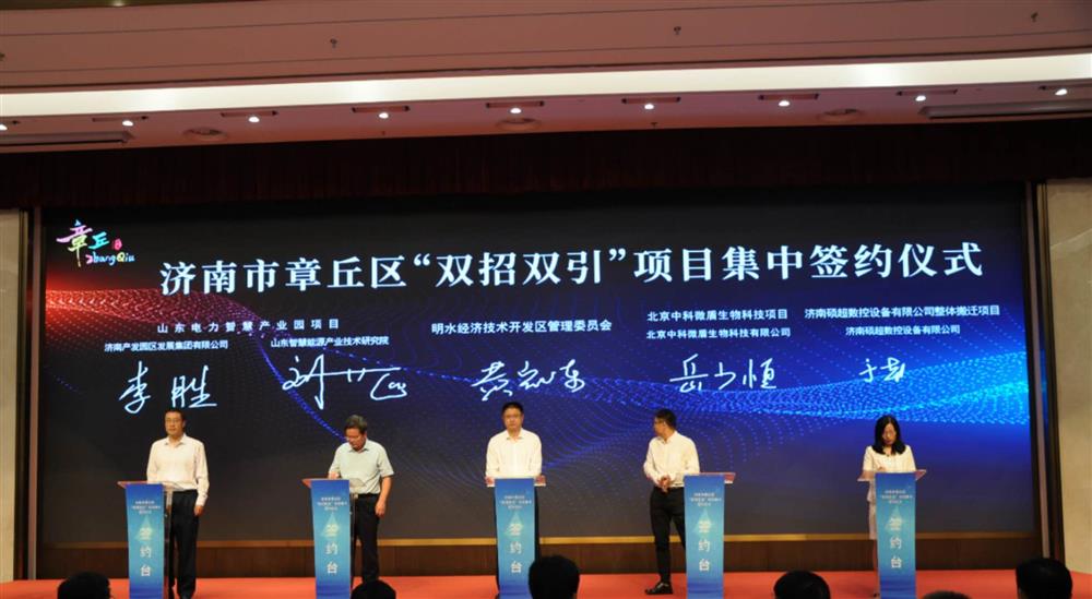 2020年9月1日,章丘區(qū)舉辦“雙招雙引”項目集中簽約儀式,濟南產(chǎn)發(fā)園區(qū)發(fā)展集團與章丘區(qū)人民政府、山東智慧能源產(chǎn)業(yè)技術(shù)研究院就“山東智慧能源產(chǎn)業(yè)園”項目合作事宜簽訂戰(zhàn)略合作框架協(xié)議。集團黨委副書記、總經(jīng)理黃蓓出席簽約儀式并致辭。